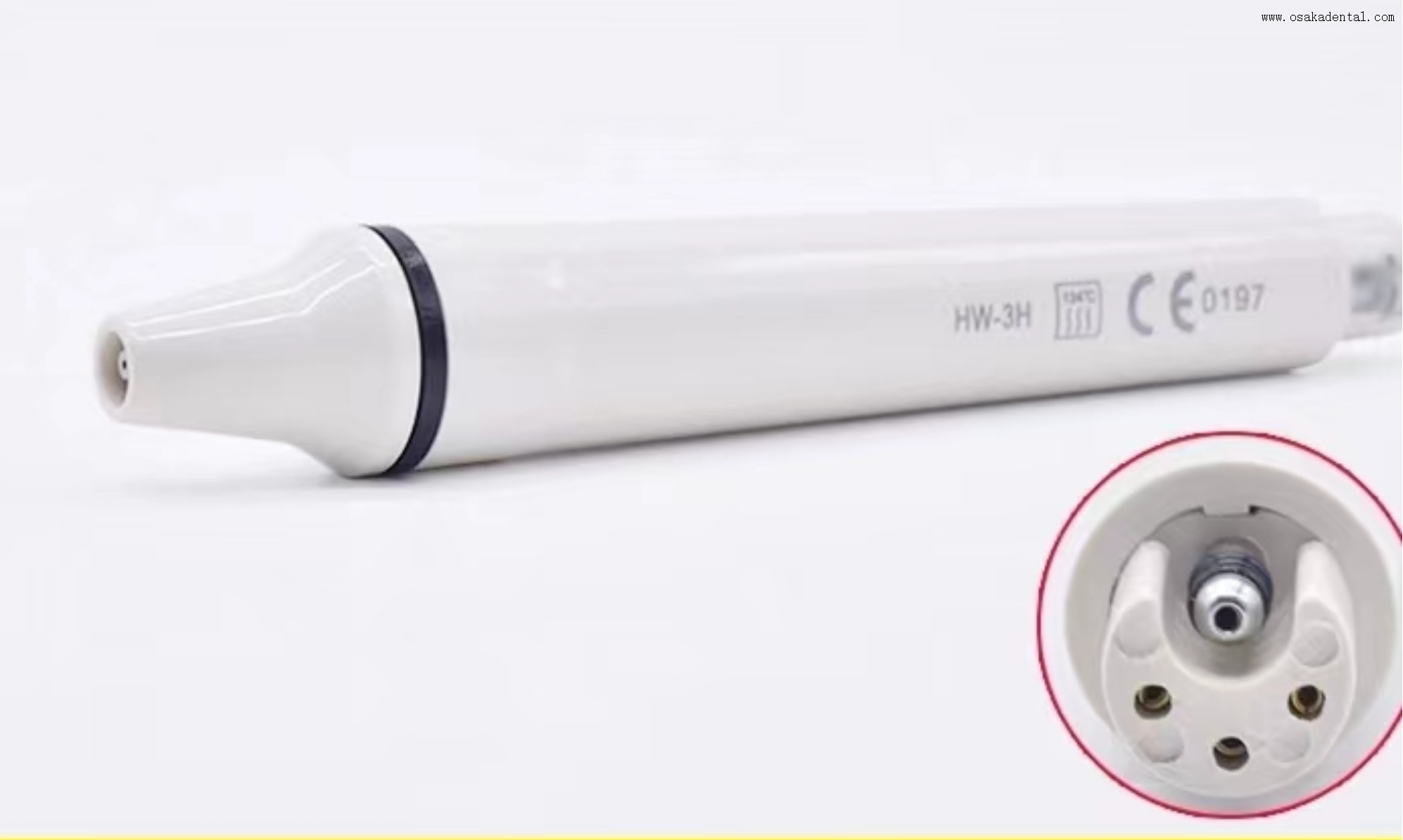 Une pièce à main de détartreur est un type de pièce à main dentaire qui contient différents embouts de détartreur pour nettoyer les dents. Cette pièce à main est en plastique, compatible avec le pic HW-3H.